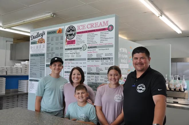 From our signature brick oven pizzas, gourmet “Dudwiches,” to our hand-breaded tenders, every bite is made with intention, quality, and a whole lotta love. We started this journey as a family, and every day we’re reminded how special it is to see others gather, laugh, and connect over something we’ve created.
