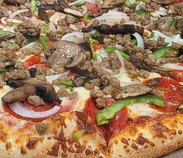 housemade red sauce, mozzarella, pepperoni, ham, sausage, real bacon, beef